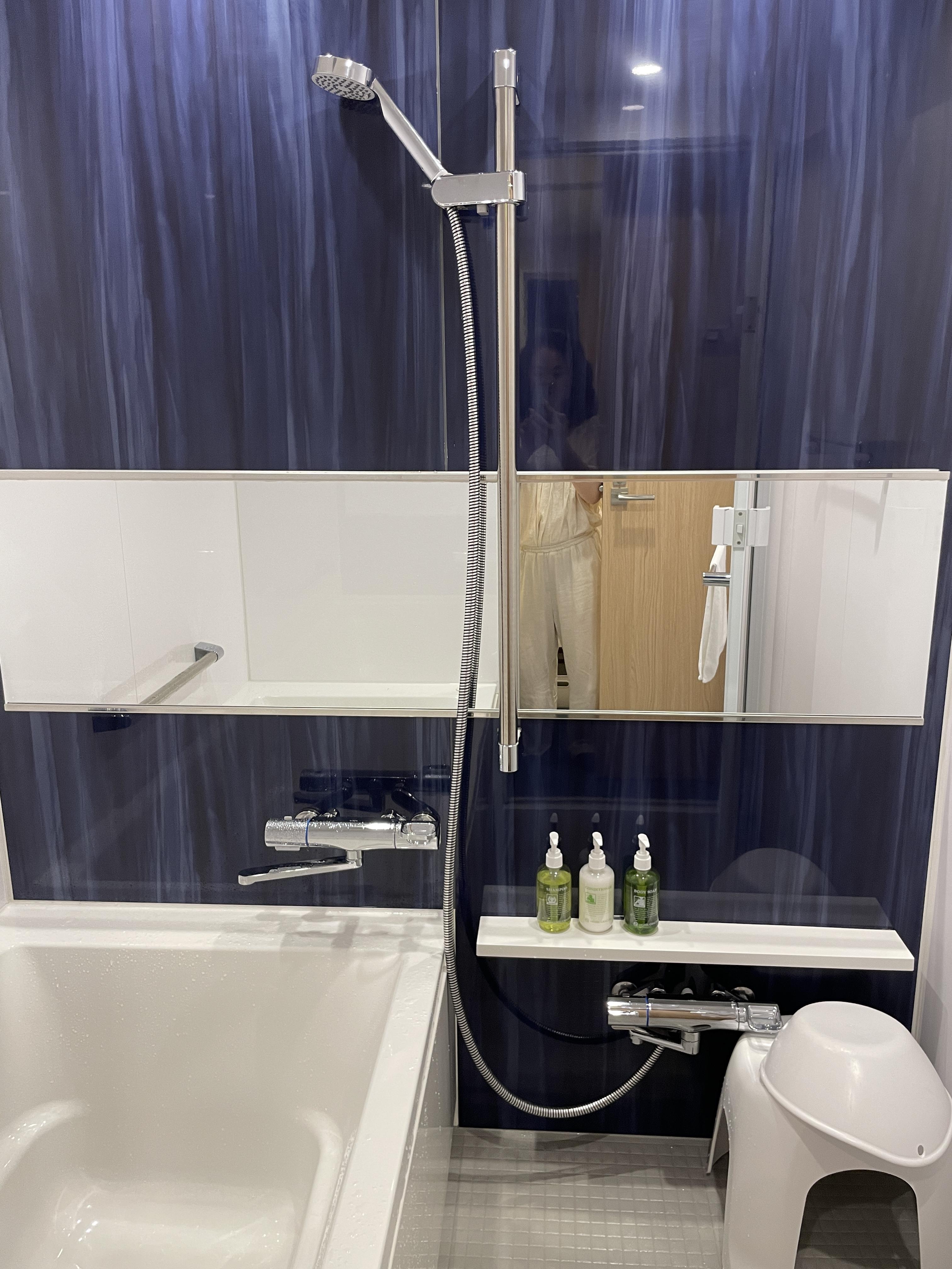 하지만 이제 7살이 된 아이와 남편과 함께 셋이서 더블침대에서 자는 건 쉬운 게 아니었어요. 계속 밤에 잠을 설쳤던 거 같네요. 이제는 무조건 침대가 2개 있는 객실을 골라야겠다고 생각했어요. 호텔 그레이서리 오사카 난바의 장점이 있다면 제 생각에는 화장실, 욕실 같아요. 일본 숙소는 워낙 좁고 화장실도 정말 좁은 걸로 유명하잖아요. 예전에 친구들과 도쿄에 왔을 때도, 언니와 오사카에 왔을 때도 숙소 화장실이 정말 좁아서 안에서 열고 닫을 때 애를 먹었던 기억이 있어요. 하지만 이곳은 화장실, 욕실이 생각보다 정말 넓었어요. 욕조도 있고 목욕탕처럼 앉아서 씻을 수 있는 곳도 있어서 반신욕이나 족욕 좋아하시는 분들이 있으면 여기 추천드려요! 위 사진 참고해 주세요~